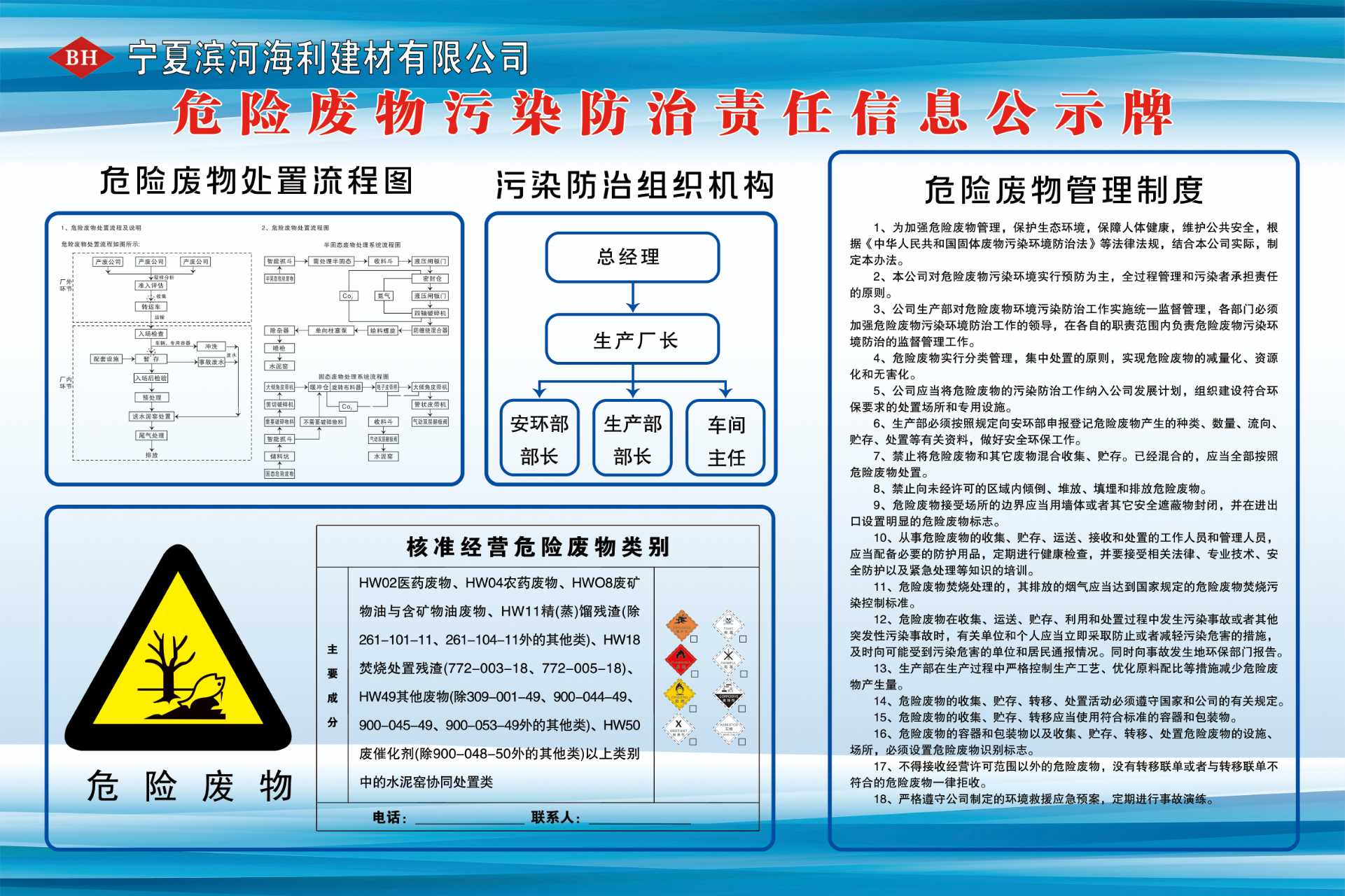 關(guān)于寧夏濱河海利建材有限公司危險(xiǎn)廢物污染防治信息的公示