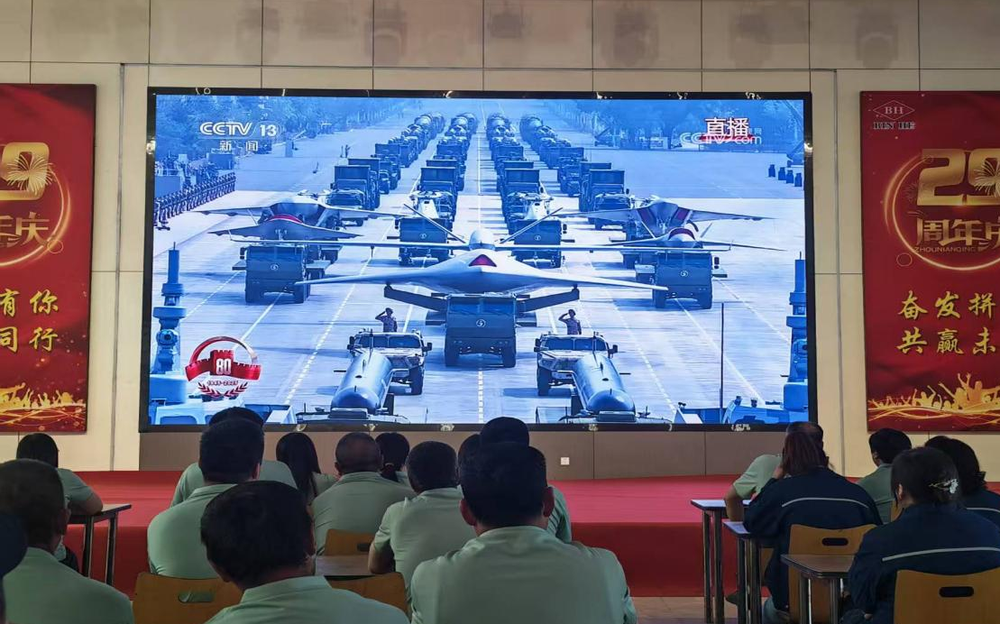 觀看閱兵活動是一場深刻的愛國主義教育。收看現(xiàn)場氣氛莊重?zé)崃?,員工們?nèi)褙炞?,認真聆聽重要講話。“正義必勝、和平必勝、人民必勝”的鏗鏘宣言,讓大家感受到磅礴力量,民族自豪感和愛國之情油然而生。從受閱部隊的颯爽英姿到空中梯隊的翱翔雄姿,每一幕都讓干部職工心潮澎湃、深受震撼?;顒语@著增強了企業(yè)的凝聚力和干部職工的歷史責(zé)任感。